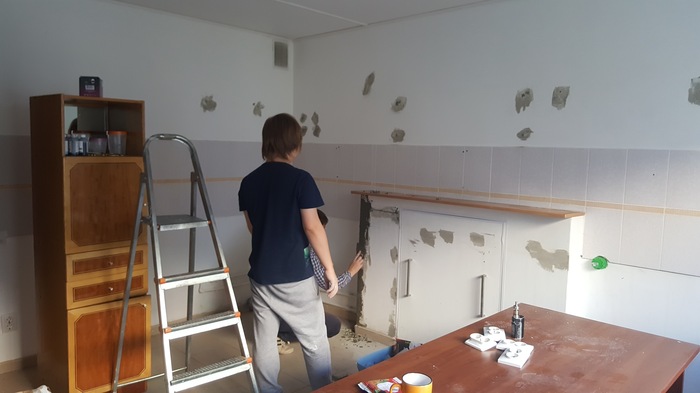 Было у нас что советски диван и советские 2 кресла (самые охереные удобные вот умели же в СССР делать мебель) и стол.Заказали чехлы на диван швее, купили кож.зам и перетянули с помощью мата и какой то матери 2 кресла, покрасили получилось как новое с магазина.Стол покрасили и залакировали в черный цвет.Обои поклеили прям на плитку хрен отдерешь. Заклеили окно пленкой( кстати знайте то что продают аля грифельная пленка это просто матовый аракл!). На пол бросили ковролин из Леруа и вообще классно получилось.Повесили телик из комиссионке и все у нас есть под икс бокс на чем играть.