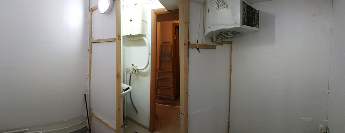 Долго описывать не буду как все начиналось сразу к сути дела. Имели помещение в ипотеке и малость денег.Сразу как решили строить бар приняли решения что сначала нужен холодильник, варианта было 2: либо в баре строить через проточный холодильник, либо отдельное помещение под камеру. Остановись на отдельной комнате.Ну и понеслась, нашли через всеми знакомы сайт по перепродажам с юлой на лого холодильник вместе с вывеской в комплекте от старой пивнухи. И так как знаний ноль а в интернете хрен найдешь как строить, берем поверхностные знания и строим.Что понадобилось:брус, пенопласт, отражающая теплоизоляция, OSB и кривые руки.