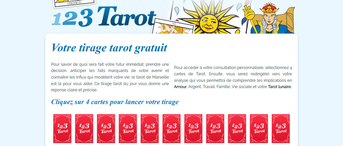 8. 123Tarot — гадание онлайн бесплатно и самообучение