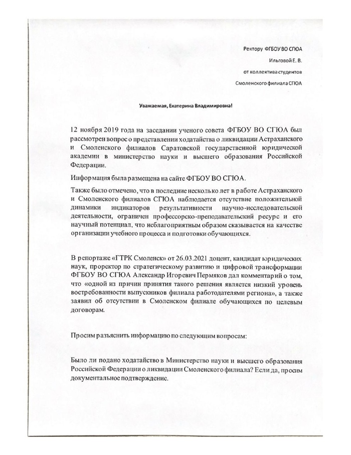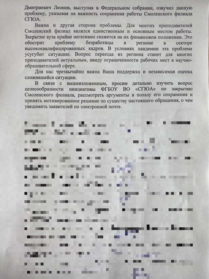 Верим,что максимальная публичная огласка поможет сохранить единственный государственный специализированный ВУЗ в Смоленской области,в котором обучаются студенты из многих регионов, и выпускники которого становятся востребованными специалистами и устраиваются по профессии, в т.ч в госорганы.