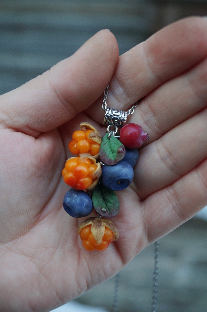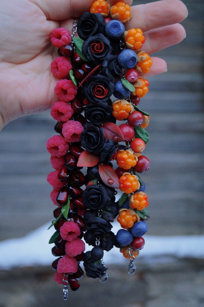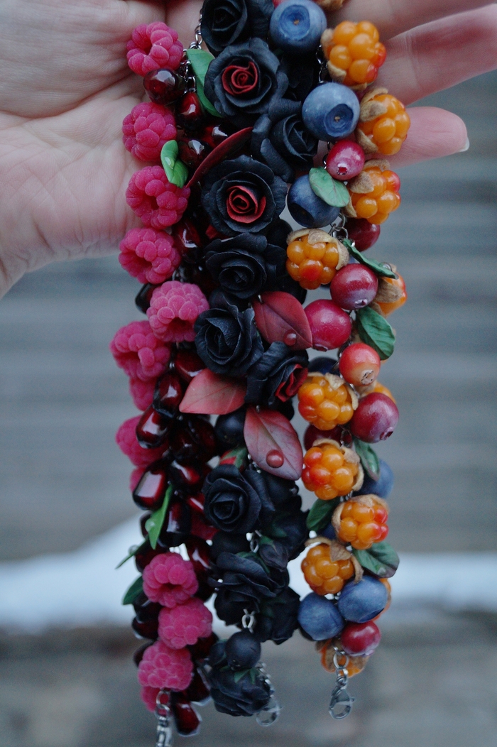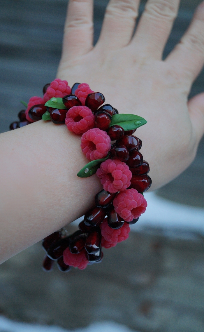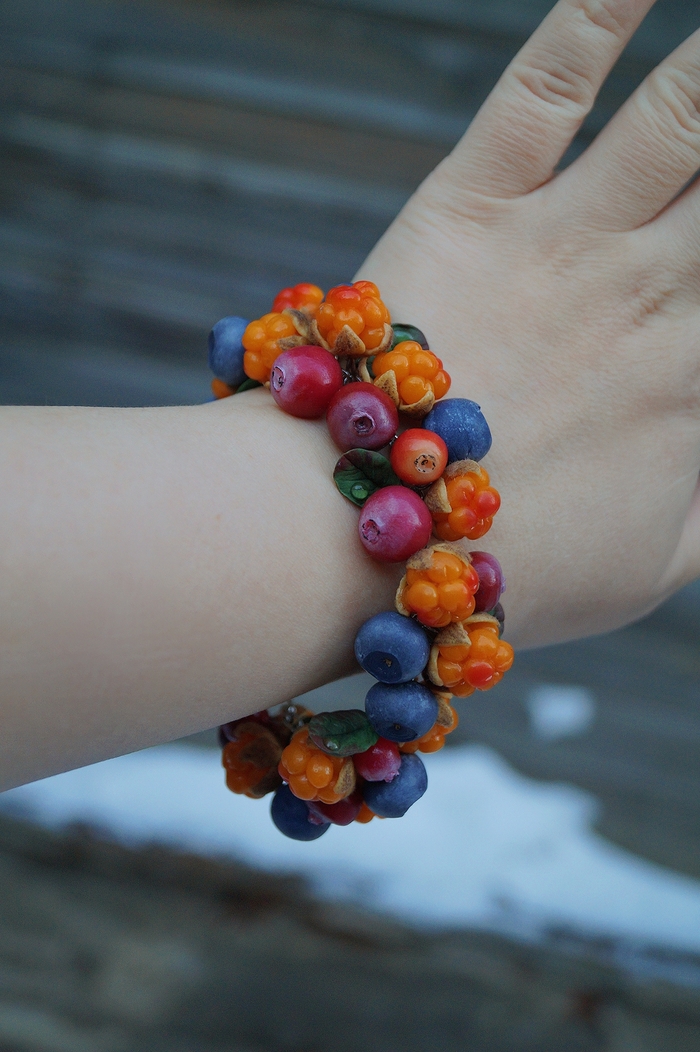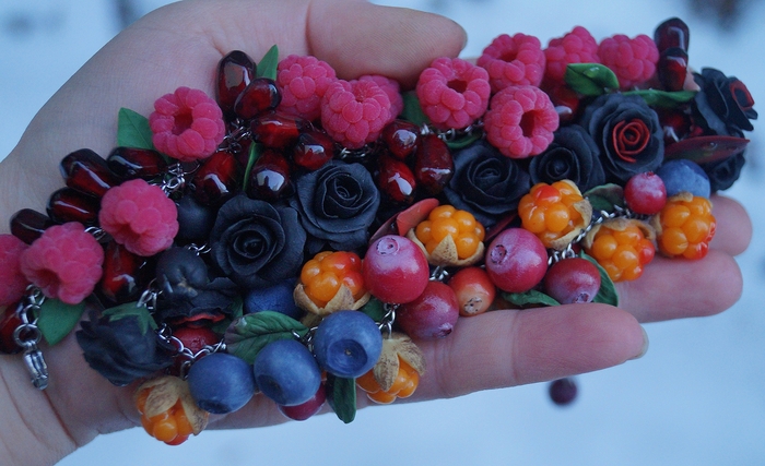 Браслеты с ягодами и цветами, полностью ручной работы. Полимерная глина