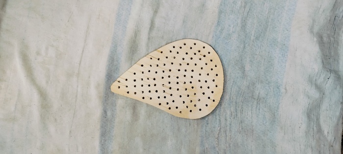 Выпиливаю основу, размечаю, сверлю. По «размечаю», конечно преувеличил. Примерно–верно на глаз. Местами , поиграл расстояниями, чтобы сделать донышко «объёмным–пушистым», а не плоским.