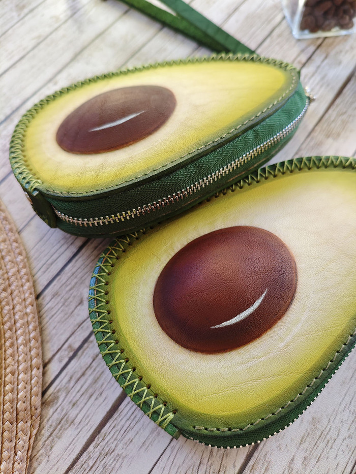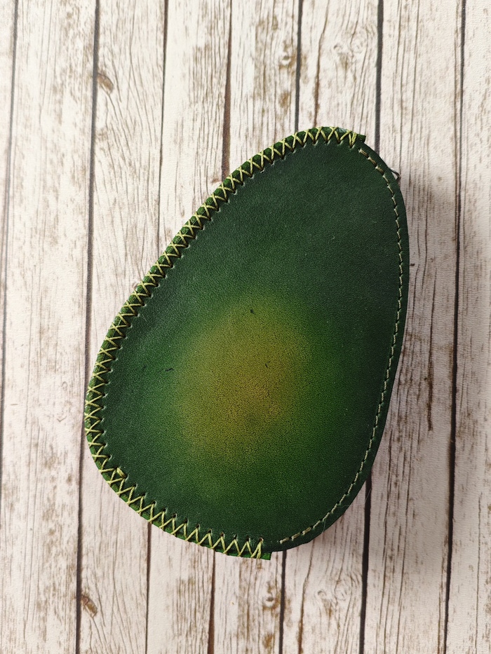 Натуральная кожа. Ручные окрашивание, формовка, прошивка. Ремешок на руку и миникарабин для возможности прицепить ключи внутри.