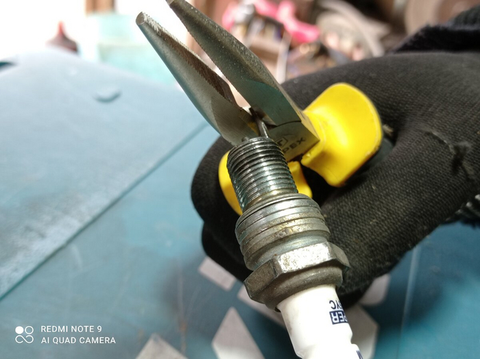 🛠 Итак, свечи очистили, теперь с помощью круглогубцев выравниваем и скусываем боковой электрод.