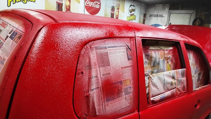 Следующим шагом нужно было где-то покрыть лаком металл, пока он не обветрился и не покрылся пылью и жиром. Не долго думая, я понес скульптуру в подвал, где и покрыл ее краской из баллончика в несколько слоев.