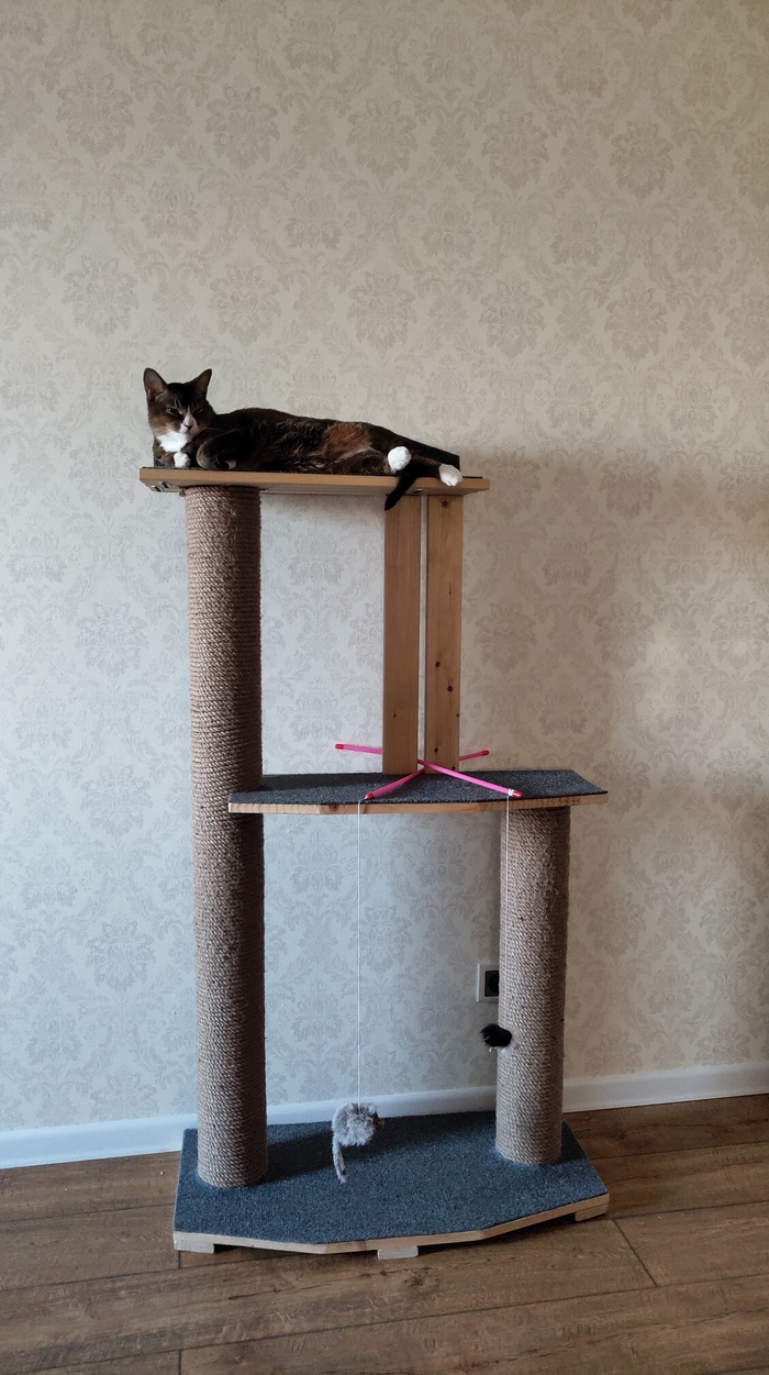 Прошло пол года, полет отличный, мусора минимум, кот вроде как рад - точит коготочки только на ней и любит лазить по игрухе и что бы его погладили на верхнем этаже(из-за нижних ног шатается, не сильно и не падает, фанера была с пузом), игруха стоит на против компа и всем удобно смотреть сериалы))) фото сегодня, Адольф и его его любимые женщины:
