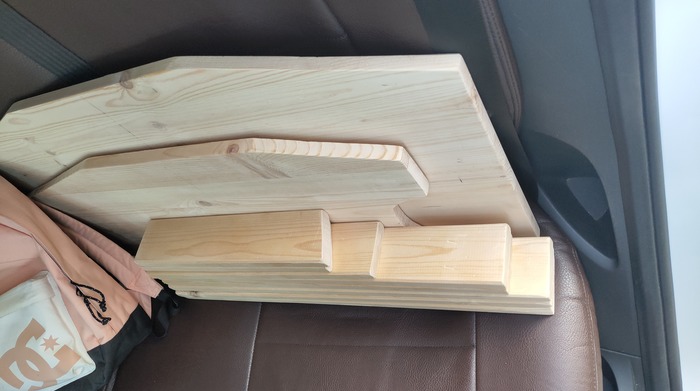 И прошлись нождачкой + решили взять старое днище кровати (привет Икея), которое тоже напилили по размерам и отшлифовали: