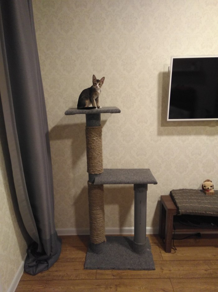 Естественно малому надо играть и точить когти, было принято решение сделать ему комплекс (покупать не вариант, ибо не нравится внешне, а что нравится не по карману)