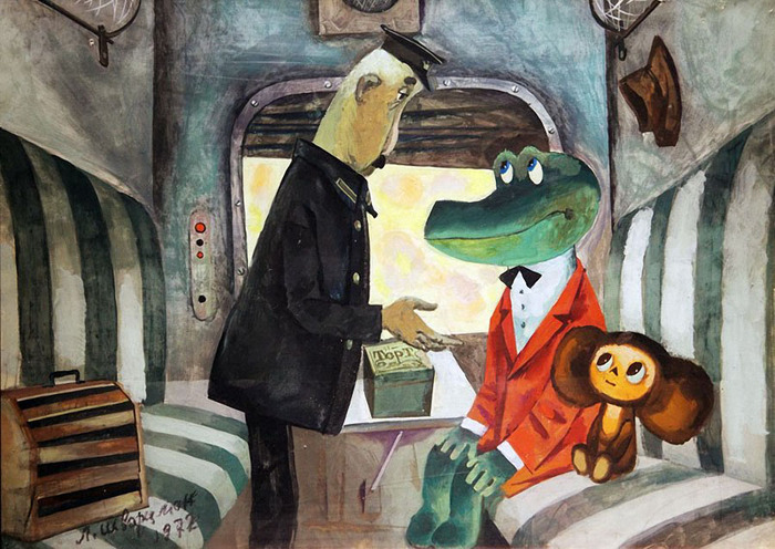 Начал я рисовать Чебурашке уши: сначала наверху, потом они постепенно стали сползать и увеличиваться. Ко мне регулярно приходил Качанов, я показывал наброски, мы их обсуждали, спорили, он выражал свои пожелания, я перерисовывал. Благодаря таким совместным усилиям и возник окончательный эскиз. На нем, правда, у Чебурашки еще есть медвежий хвостик, который потом сильно уменьшили. И ножки поначалу были подлиннее, но Норштейн посоветовал сделать их маленькими, как сейчас. После создания эскиза в цвете я сделал чертеж, а мастера-кукольники изготовили Чебурашку, и он зажил своей жизнью».