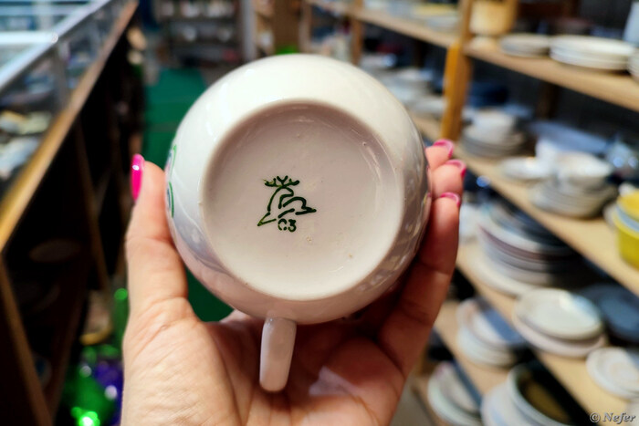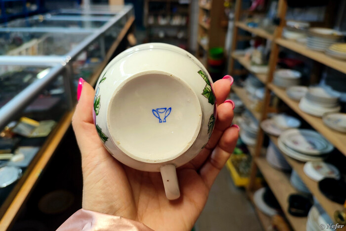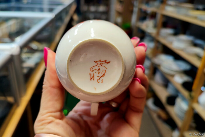 Каждый уважающий себя завод имеет собственное клеймо. Вензеля ЛФЗ - это Ленинградский фарфоровый завод. Силуэт сокола - Дулево. Летящая чайка - Краснодар. Олень в прыжке - Городницкий завод. На дне этой чашки - рыбки, такой знак был у Первомайского фарфорового завода. Он располагался в Рыбинском районе Ярославской области.