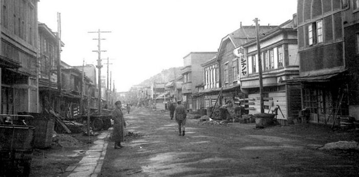 Советские солдаты на пустынных улицах ТойохарыОднако нагнетание японской пропагандой гипотетических «ужасов» сыграло злую шутку с планами японского командования — гражданское население, вместо того чтобы прятаться в лесах и партизанить против советских войск, было так заранее напугано, что предпочло не сопротивляться. По городам и посёлкам Южной Сахалина были расклеены первые советские приказы о возвращении японского населения, начинавшиеся словами «Война окончена, народы получили возможность трудиться». К началу сентября 1945 года японское население, напуганное, но послушное, стало возвращаться из лесов в свои дома.
