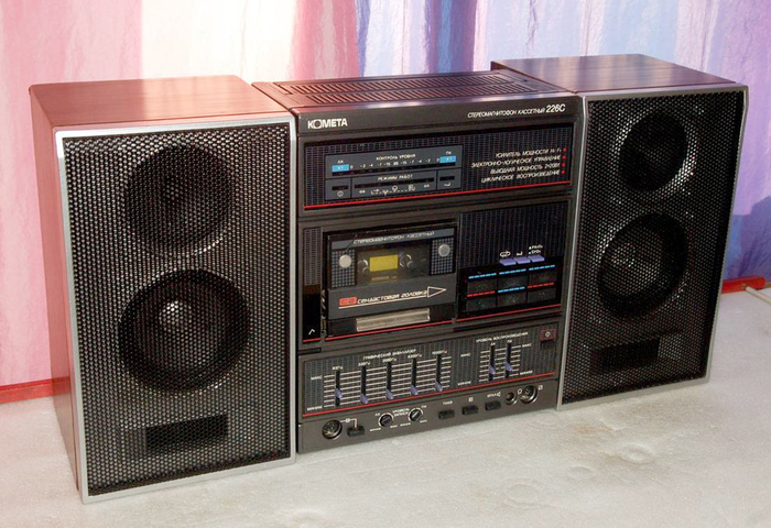 Не знаю почему, но я люблю магнитофоны Комета. Пожалуй, это единственный полный магнитофон с усилителем, который мог не только «раскачать» школьную дискотеку, но и был удобен в переноске. Вспомним именно последнюю версию данного аппарата.