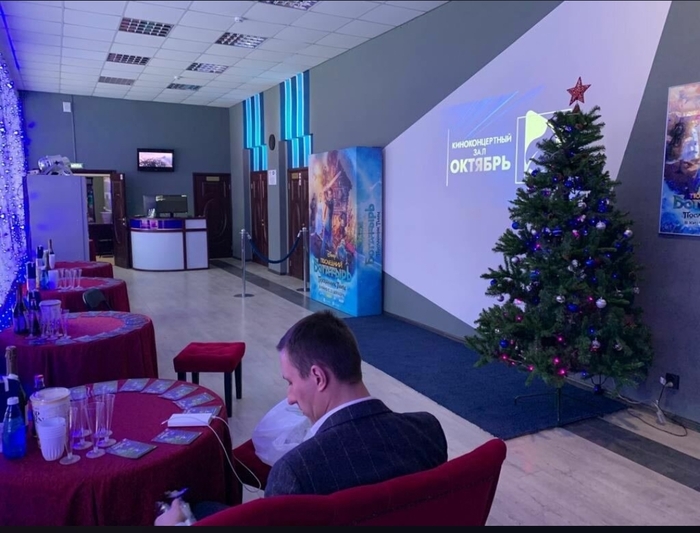 Приехали с семьёй на сеанс, только закончилась ёлка-выбегали веселые дети, уставшие артисты, в зале все готовили для киносеанса-убирали ёлку и декорации. На нас никто не обращал внимание, хотя сеанс должен был начаться через 10 минут.