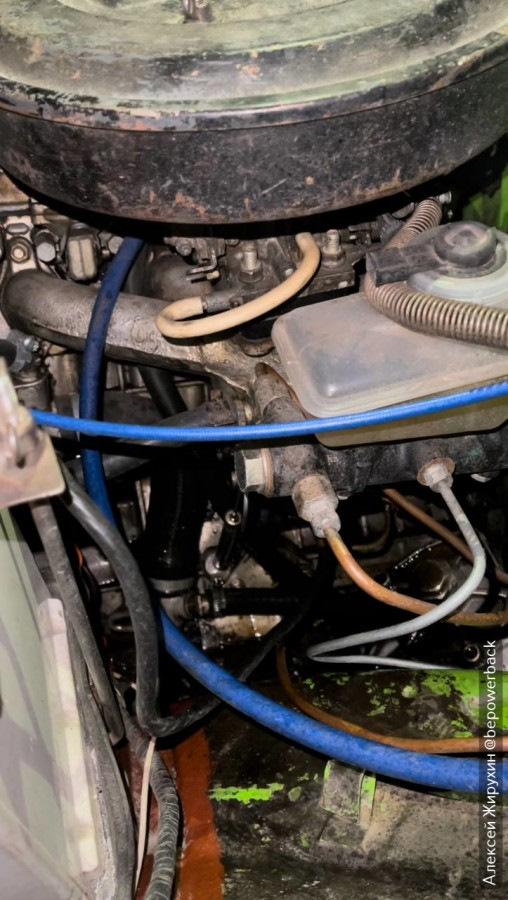 По пути с двигателя слетел провод, сигнализирующий падение уровня масла. И по иронии судьбы замерз сапун, масло выкинуло, и мы этот момент не увидели. Итог закономерен — двигатель застучал))) Короче, приехали… Впереди на карте была шиномонтажка, пошли туда и попросили хоть какое-то масло, нам выдали непонятную густую субстанцию, похожую на мед. Терять было нечего.