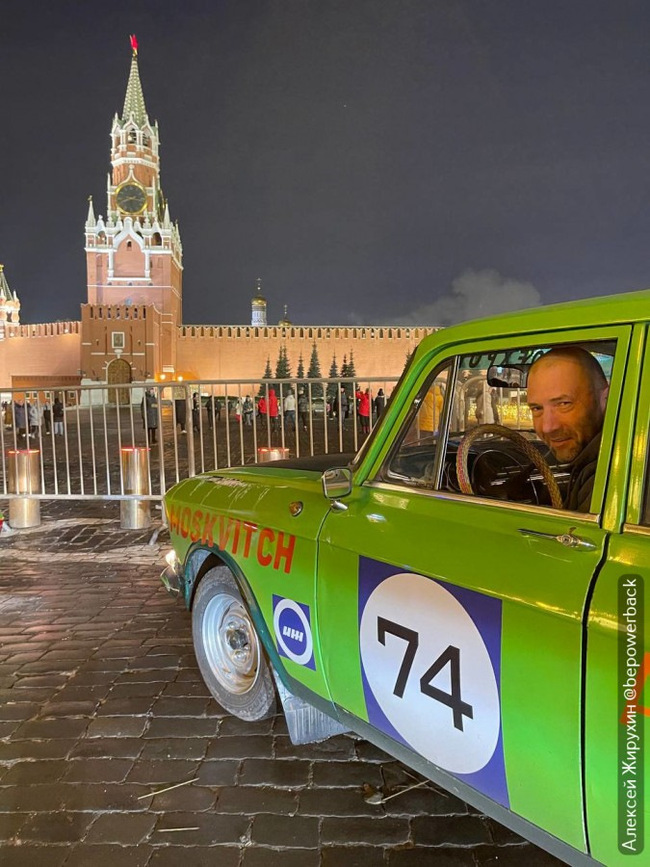 И вот в таком виде мы выкатились на Красную Площадь. Сказать, что гуляющий на площади народ был в шоке — ничего не сказать, а людей в новогодние праздники было прям очень много. Все бросили новогоднюю ярмарку и обтупили нас. Особенно, когда мы прямо там полезли под капот, потому что Москвич опять заглох и не хотел заводиться.