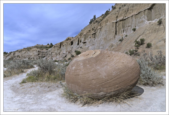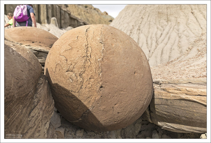 В Северной Дакоте эти «ядра» были довольно внушительных размеров, некоторые до 3 метров в диаметре. Часть из них уже выпала из породившей их стены, а другие всё еще торчали в нескольких метрах над землей.