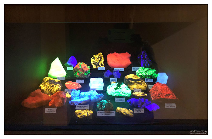 Также полно зубов и когтей древних млекопитающих, и неожиданно хорошая большая выставка разноцветных кристаллов, минералов и драгоценных камней. Это коллекция мирового уровня, включающая экспозицию минералов, которые светятся в ультрафиолетовом свете.