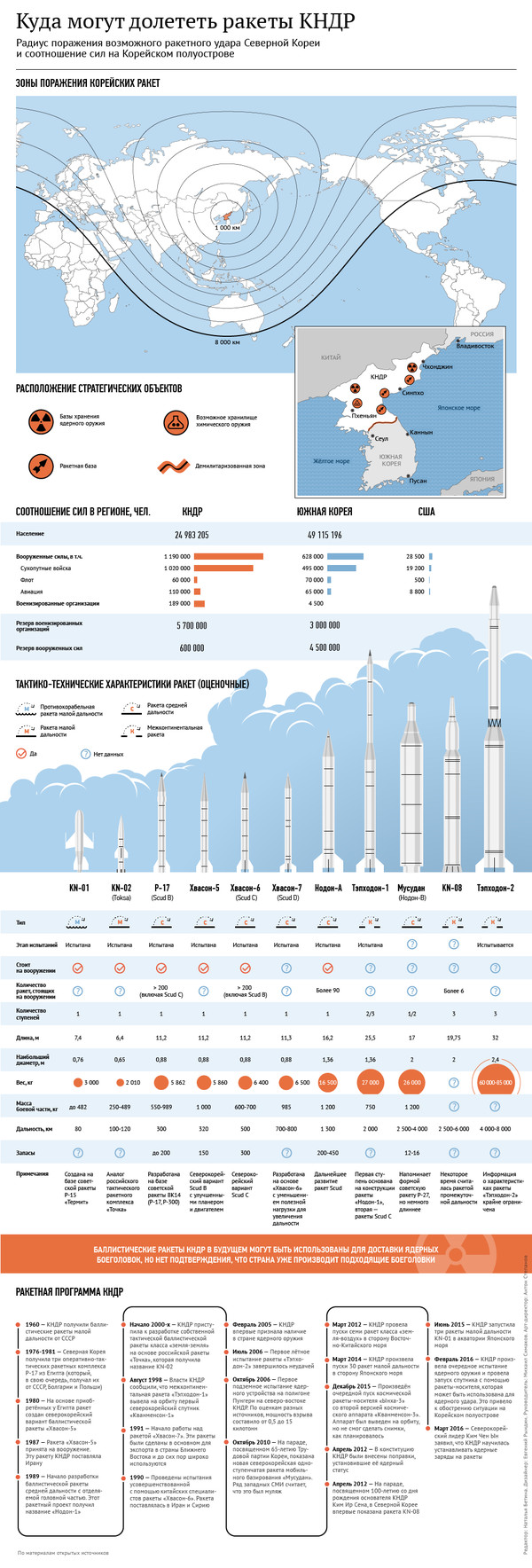 С начала этого года КНДР провела четвертое ядерное испытание и несколько пусков баллистических ракет под предлогом защиты от угрозы со стороны США, которые на постоянной основе держат на юге Корейского полуострова 28 тысяч военнослужащих. Несмотря на санкции со стороны Совбеза ООН и ряда отдельных стран, Пхеньян неоднократно заявлял, что ядерные и ракетные разработки будут продолжены.