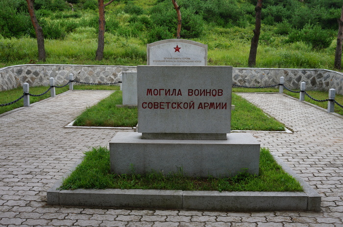 Конечно, нам не могли не показать памятник нашим соотечественникам, которые помогали корейским товарищам скидывать японских оккупантов в 1945 году и погибли на территории Кореи. Наши солдаты были похоронены в братской могиле как раз рядом с рыбацкой деревней.