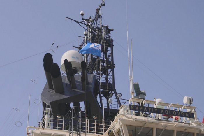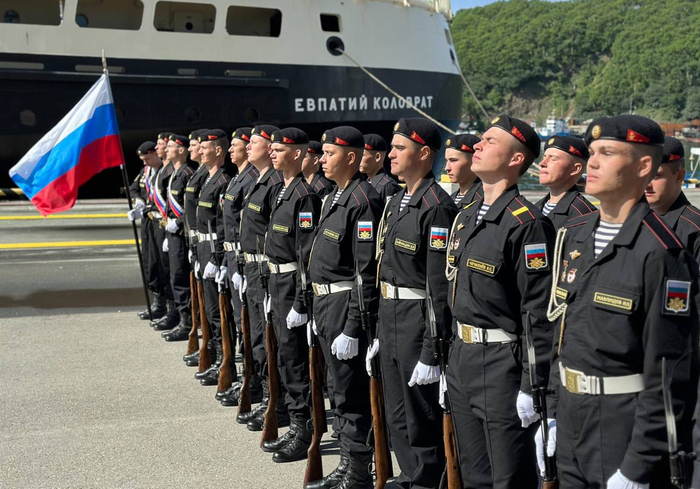 В Петропавловске-Камчатском на новейшем корабле ледового класса «Евпатий Коловрат» поднят военно-морской флаг.