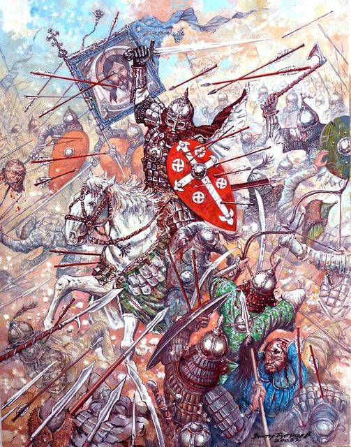 Кадр из диафильма 1988 года "Сказание о Евпатии Коловрате"