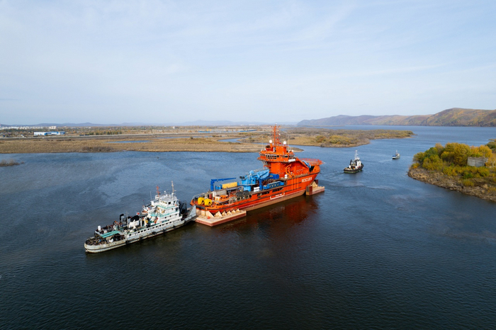Другой строящийся спасатель, судно "Керченский пролив" отправили на достройку во Владивосток с Амурского ССЗ, 1200 км пути
