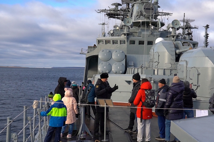 Воспитанники филиала Нахимовского военно-морского ордена Почета училища в городе Мурманске посетили новейший патрульный корабль ледового класса Северного флота «Иван Папанин». Североморцы провели для ребят экскурсию по кораблю.