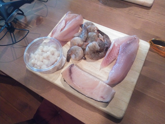 Морские гребешки - грамм 200, можно замороженные (только разморозьте правильно, а не как я - под горячей водой, не повторяйте моих ошибок )