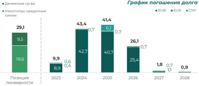 - В 24 году будет оферта по некоторым выпускам облигаций ( 1 выпуск в ноябре 24 года – 10 млрд рублей).