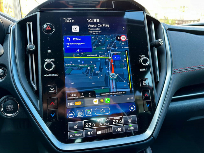 На китайский манер по центру красуется современный вертикальный планшет, на который можно вывести информацию с телефона через Carplay.