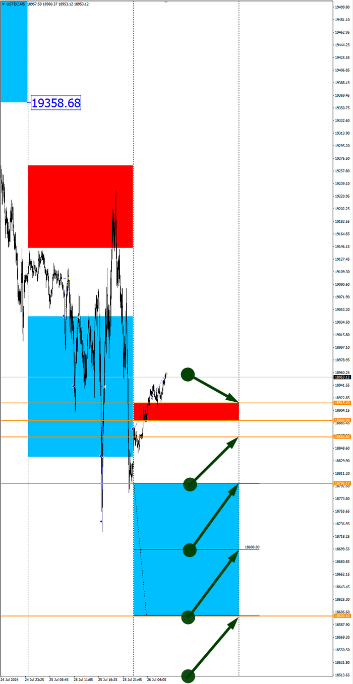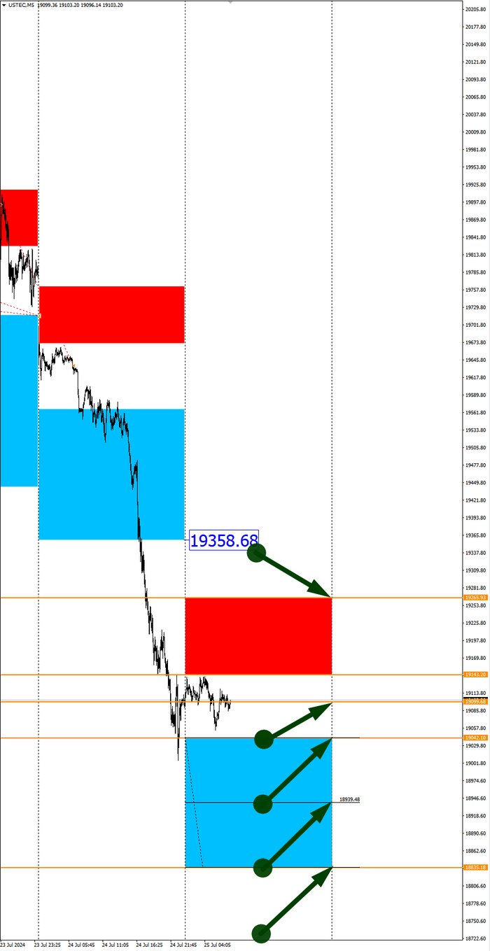 Зона покупок 19041,87-18917,09 с целью 19093,09. Покупки в приоритете пока фон доллара США слабый.