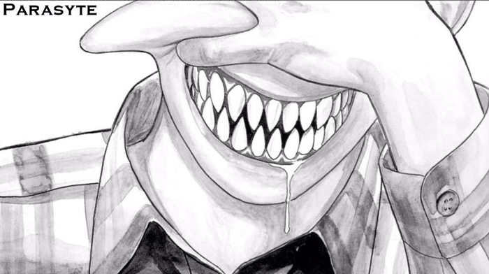 Да, звучит завязочка не слишком уж интересно, но это из-за моего скупого пересказа. На самом деле сюжет удерживает достаточный уровень драмы и интриги, чтобы читатель был заинтересован на протяжение всех 64 глав. К тому же история старается держаться достаточно реалистичных ситуаций. Главный герой, не смотря на периодическую помощь живущего в руке паразита, далеко не терминатор и не способен самостоятельно уничтожить всех пришельцев за раз. Каждый раз приходится действовать с умом, тактически обдумывать каждый дальнейший шаг в битве. Сам мир манги не ощущается каким-то фантастичным. Всё максимально приземленно и написано так, что ни на секунду не будет времени усомниться в том, что если ситуация, подобная случившейся в манге, произошла бы по-настоящему, то примерно так всё и было бы.