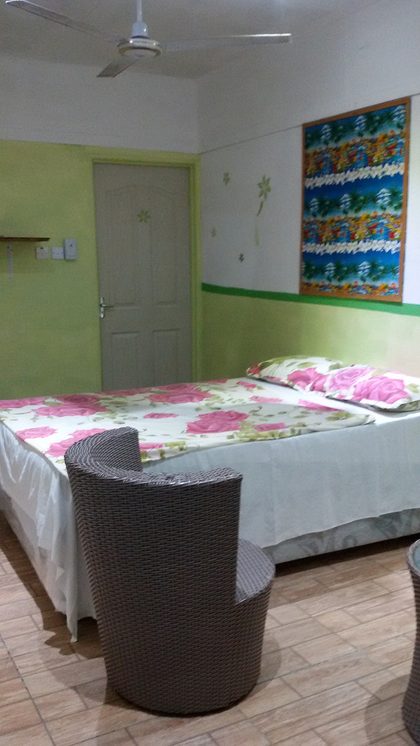 На повороте к деревне Aux Cap меня уже ждала хозяйка Джуди Мона. Мы прошли 500 метров до ее участка состоящего их трех зданий и меня поселили в самый маленький. Размером 8 на 3. Несмотря на скромные размеры там была кухня и санузел. Вот этот домик - с зеленой крышей, за основным зданием:
