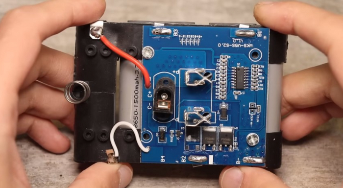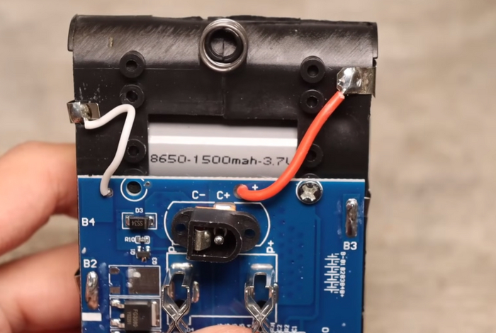 Минус питания тоже идет через никелевую ленту, без применения проводов, в принципе добротно все сделано.