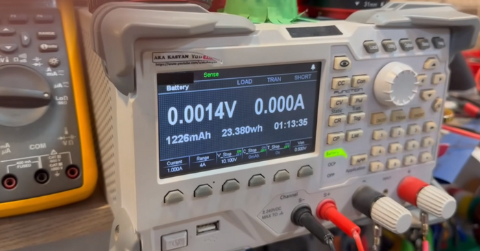 Напряжение окончания разряда составляет 10В, выставлен такой низкое напряжение для того чтобы сработало именно отсечка на BMS. Разряд окончен, аккумулятор отдал 1226 mAh, конечно же как всегда меньше чем заявлено, но и на том спасибо, в принципе бывает и меньше.