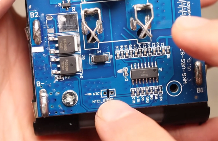 Разобрал аккумуляторную батарею, здесь ячейки соответственно 18650, 1.5Ah (если верить надписям), сварен в принципе неплохо, плата BMS без балансировки, установлено два мосфета, но предусмотрено посадочное место для еще одного, это в общем-то универсальные платы и применяются для разных устройств, для мощных инструментов больше транзисторов.
