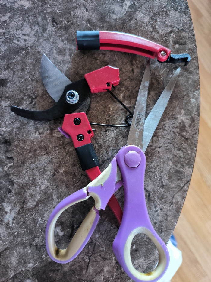 А сейчас сунулся в нижний ящик тумбочки на кухне - увидел этот садовый секатор.