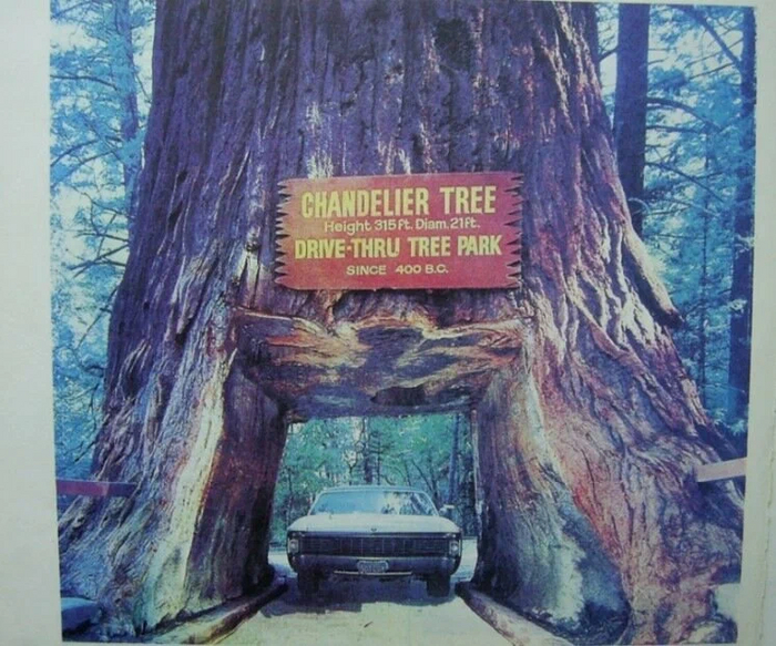 Задокументировано, что на пне срубленного мамонтова дерева однажды свободно уместилось… тридцать человек. Настоящая танцплощадка! В одном из парков США в стволе гигантского секвойядендрона даже прорублен автомобильный тоннель.