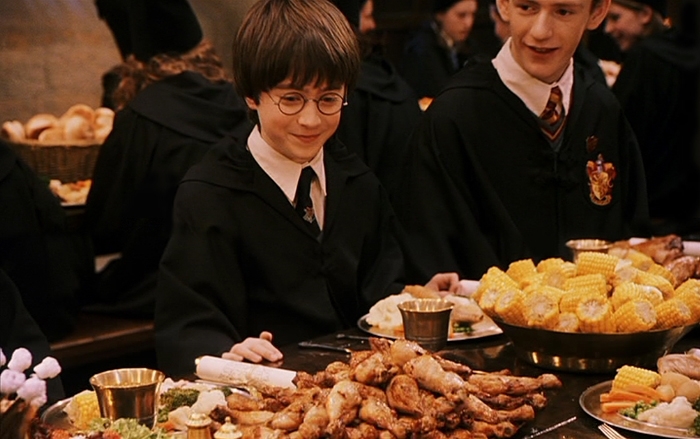 Очень редко в кино появляется настоящая еда, в большинстве случаях она сделана из несъедобных материалов. К примеру, я уже рассказывал об этом в видео о съемках «Гарри Поттера». Помните блюда, которые были в первой части Гарри Поттера в большом зале, вот только в этой части картины и использовалась настоящая еда. Она доставила немало проблем, так как постоянно портилась и её приходилось постоянно заменять. Поэтому в следующих частях картины, все что вы видели на столах было сделано из смолы и пенопласта.