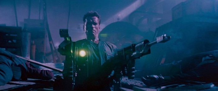 Многие наверно обратили внимание на плазменные винтовки, которыми были вооружены Терминаторы во вступительной сцене фильма. В реальности это модифицированный пистолет-пулемет Калико.