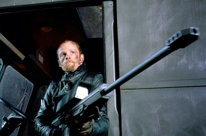 Чтобы использовать оружие так, как показано в фильме, создатели пошли на ряд хитростей. Поскольку пулемет питался от аккумулятора, то через штанину актера были пропущены кабели. Далее, для защиты от стрелянных гильз, стрелявшего облачали в бронежилет и в сценах, где это было возможно, специальную маску.
