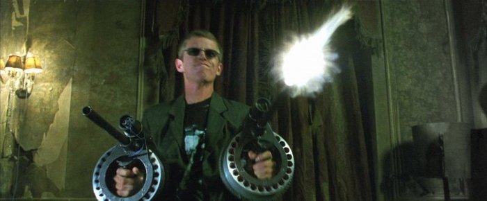 Еще один пример того, когда оружие для фильма не модифицируется, а создается. Для эпизода, в котором Маус стреляет в спецназ, оружейник Джон Боуринг смастерил пару необычных автоматических дробовиков со скорострельностью 900 выстрелов в минуту. Даже как-то жаль, что они использовались лишь в одной небольшой сцене.