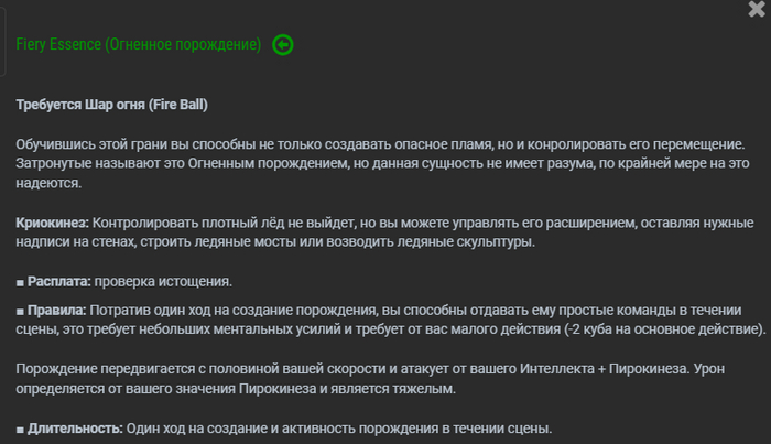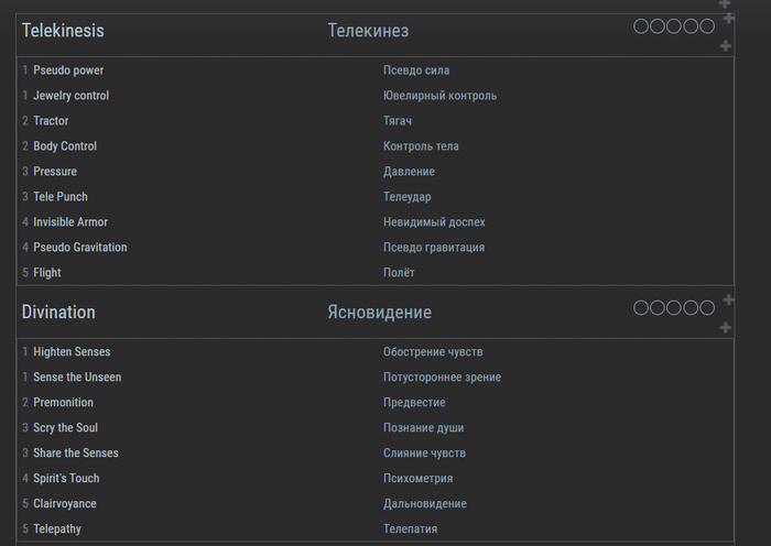 Пси - Телекинез, Пирокинез, Прорицание и Гипноз.