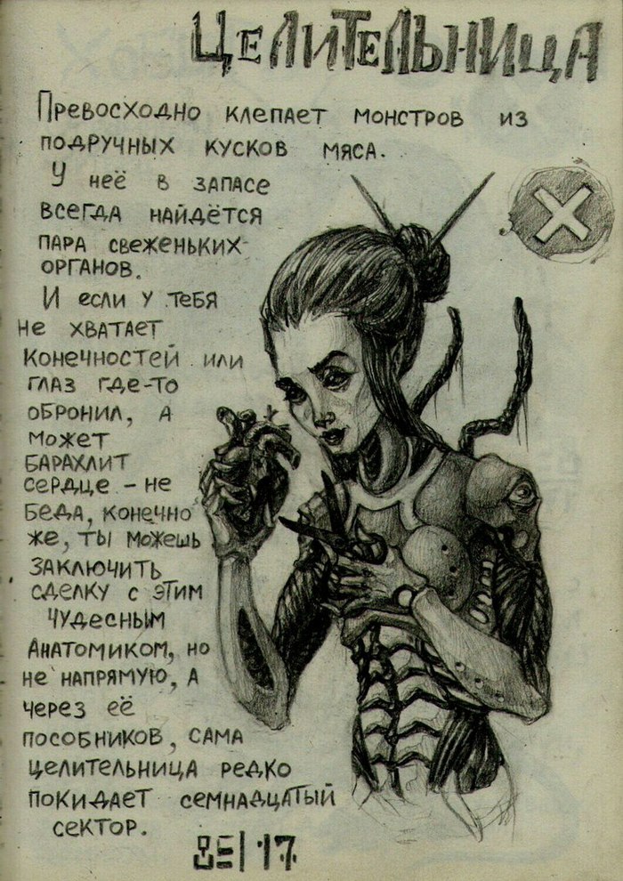 Бывший военный знал, что живет на грани с другим измерением. На грани с “сектором 17”. Пару раз он там бывал и даже был знаком с некоторыми из людей, что там обитают. От местных жителей сектора, Константин не раз слышал байку о некой “Цилительнице”. О ней говорили, что она превосходно клепает своих монстров из кусков мяса. У нее всегда можно приобрести пару свеженьких органов. Если у тебя не хватает конечностей, или глаз где - то обронил, а может, барахлит сердце, легкие или печень – не беда. Конечно же, ты можешь заключить сделку с этим прекрасным анатомиком.