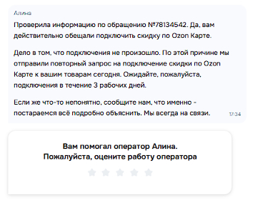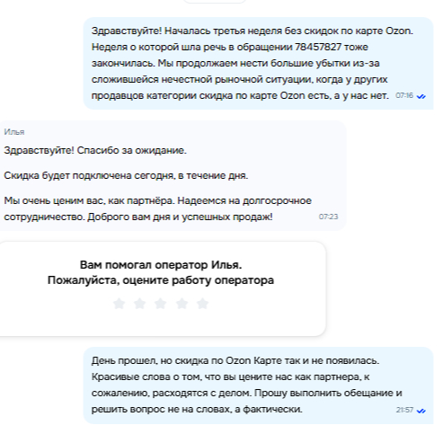Итог: День прошел. Скидки нет. Ozon не просто не чинит баг, они теперь прямо лгут о сроках, называя нас «ценными партнерами».