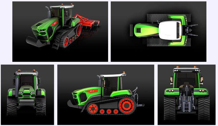 Поставила себе цель - сделать капот сельхоз трактора более похожим на внешность легкового авто. Такое решение позволило сделать дизайн с одной стороны, необычным для трактора, но с другой, совершенно нам привычным, ведь легковые авто с агрессивным дизайном мы наблюдаем ежедневно. Это должно было стать центром композиции, изюминкой, за которую цепляется глаз зрителя.