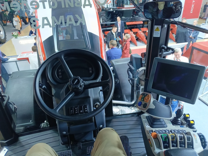 Ростсельмаш приятно удивил- выкатили вот такой аппарат. И смотрится хорошо, и в салоне- кресло с подлокотником, на котором органы управления и монитор- удобно. На красивой технике и работать приятно))