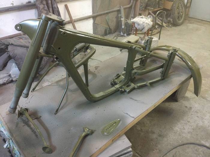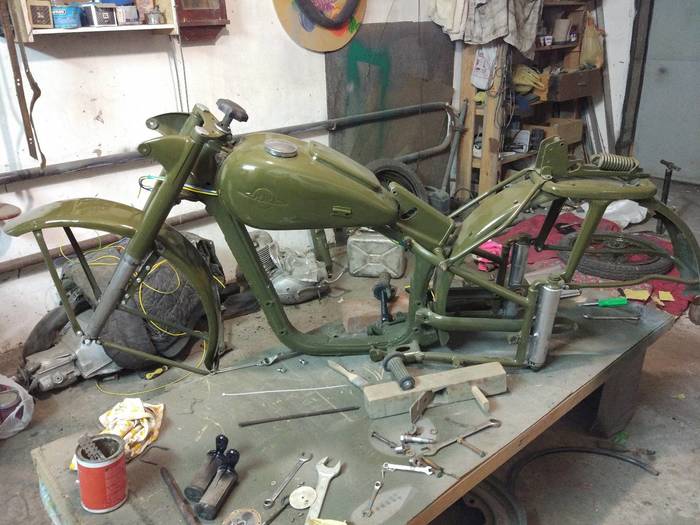 Закатив рукава началась полная разборка,попутно составляя список недостающих деталей и поиск по просторам страны. Были интересные моменты в разборе,такие как гайки на 15 или гайки с мелкой резьбой,интересное крепление сидения. И вот все разобрав-была зачистка до металла и шпаклевание неровностей,грунтования и покраска.