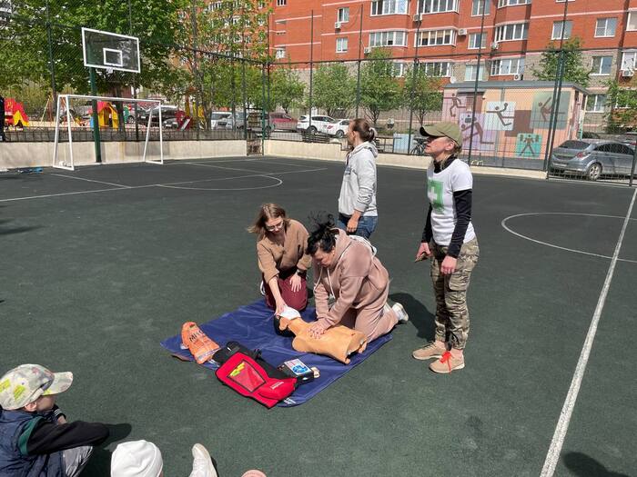 На прошлых выходных на той же самой футбольной площадке 30 человек поучаствовало в бесплатном мастер-классе по оказанию первой помощи в экстренных ситуациях.