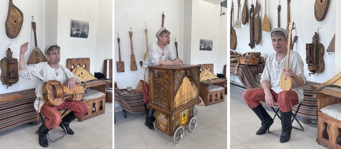 Затем отправились в роскошный Музей забытой музыки (две группы по 18 человек). Это вообще уникальнейшее явление даже в масштабе России, и тем, кто будет в нашем городе, к посещению обязательно! Там представлены и инструменты, которые можно сделать за 10 минут из, к примеру, камыша, и очень сложные.